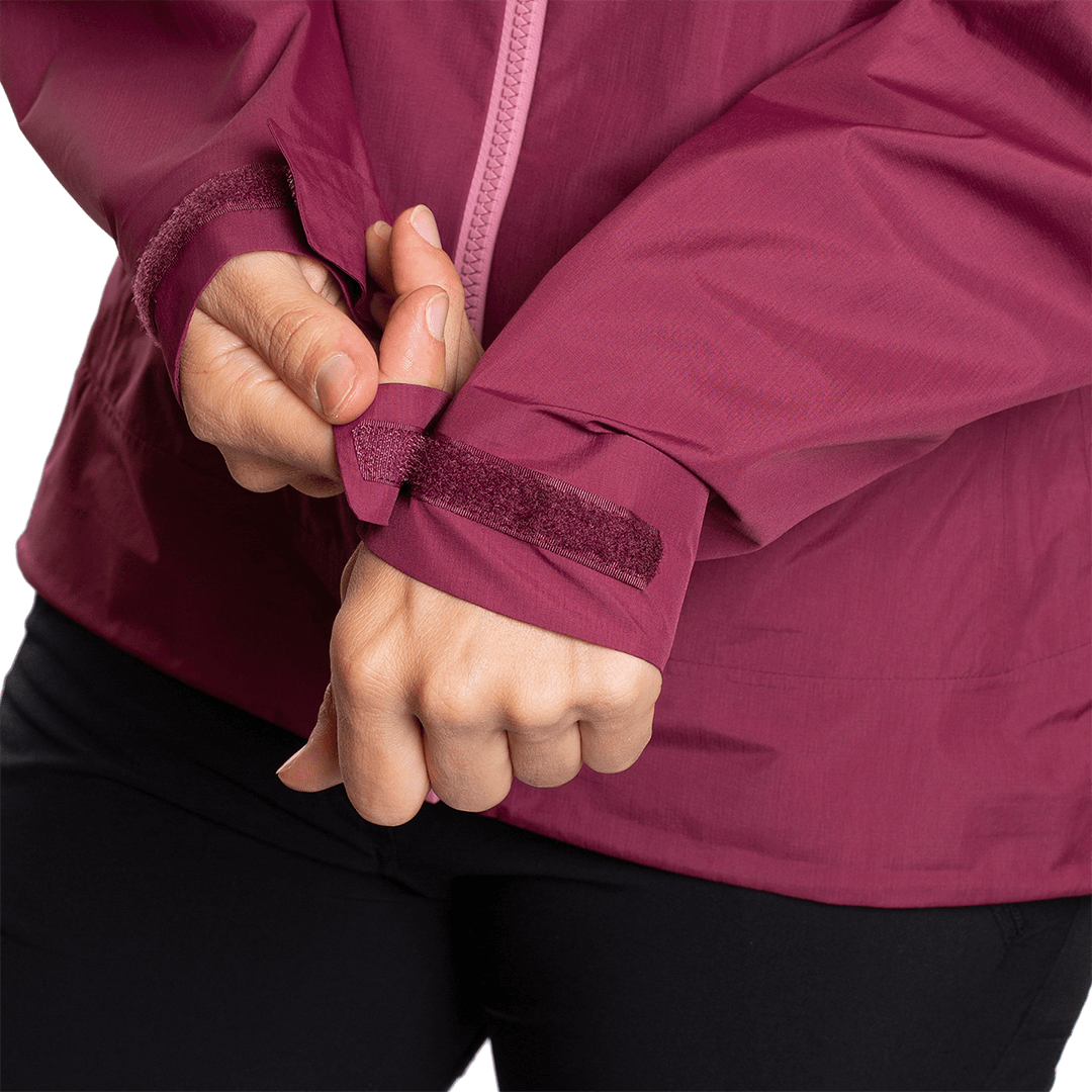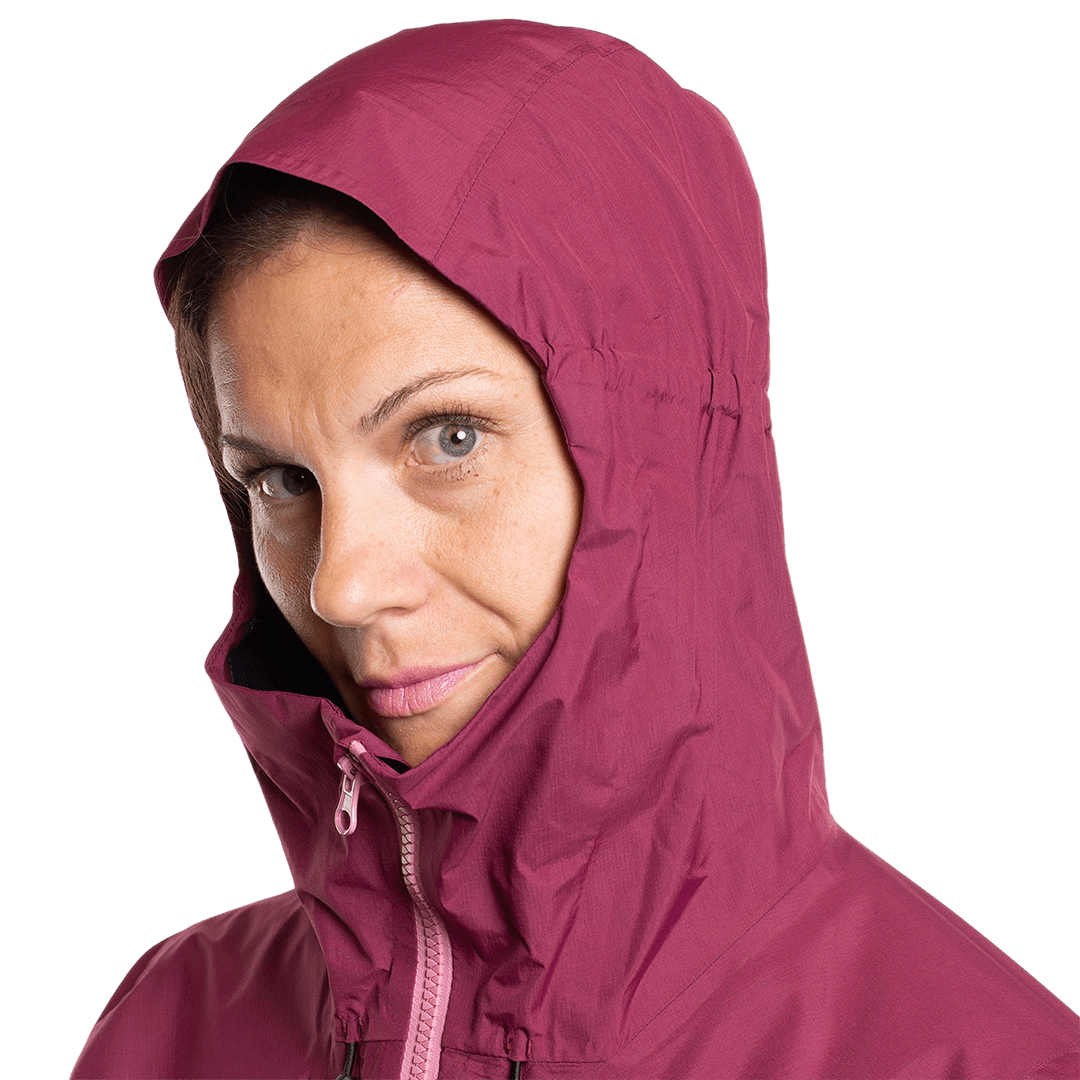 Chaqueta de alpinismo en tejido reciclado Inner Plus 2.5L con membrana impermeable, transpirable y cortavientos. Capucha fija, puños ajustables con velcro, ceñidor con cordón en el bajo y cierre tanca. Costuras selladas, dos bolsillos ventrales con cremallera, columna de agua 15000 mm, transpirabilidad 15000 g/m²/(24h).