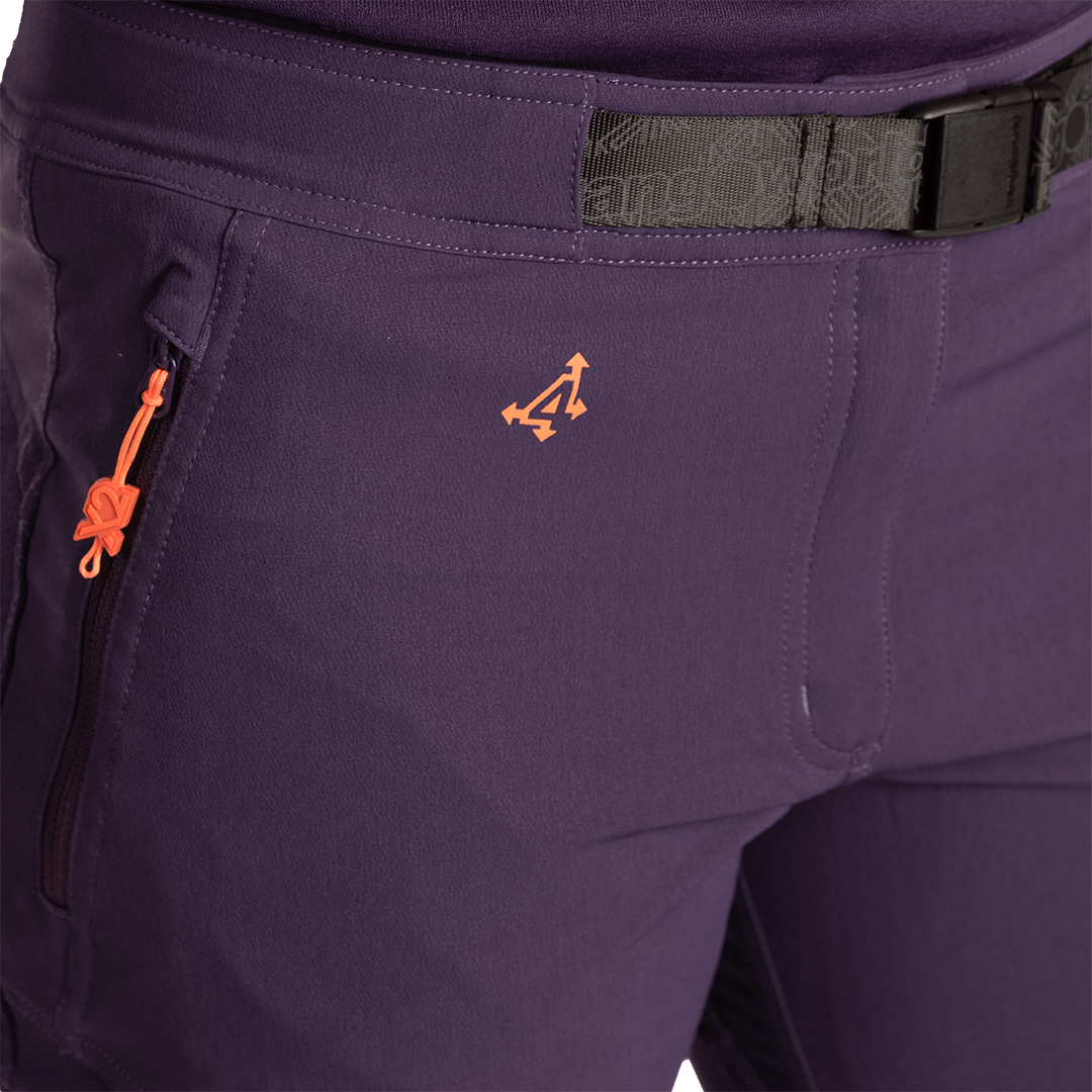 Pantalón fabricado con Nylon Free4move reciclado para durabilidad y sostenibilidad. Cintura con cinturón y goma interior ajustable, abertura con cremallera en bajo. Rodillas conformadas, refuerzos en rodillas, culera y tobillo interno. Patrón estrecho. Bolsillos laterales con cremallera vista, bolsillo oblicuo en pernera y bolsillo trasero con cremallera.